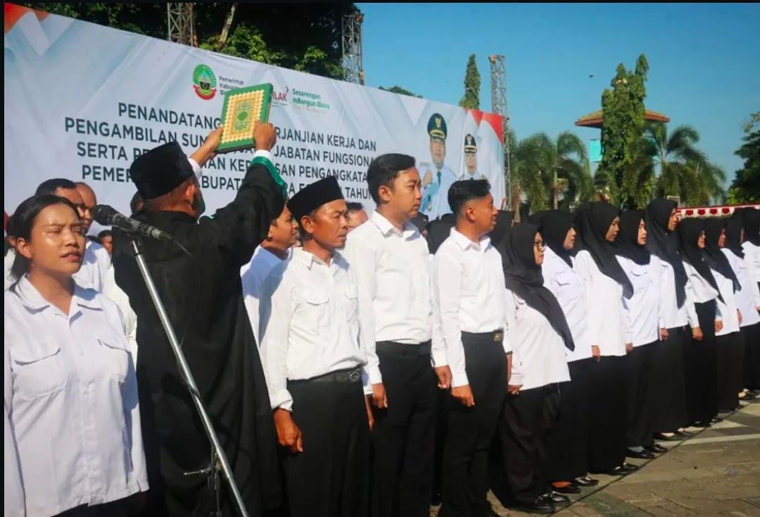 Blora, seputarpantura.com/ – Bupati Blora, Arief Rohman melantik dan pimpin penandatangan perjanjian kerja sekaligus mengambil sumpah/janji kepada 1.048 pegawai PPPK di lingkungan Pemkab Blora, Selasa (29/4/2025).